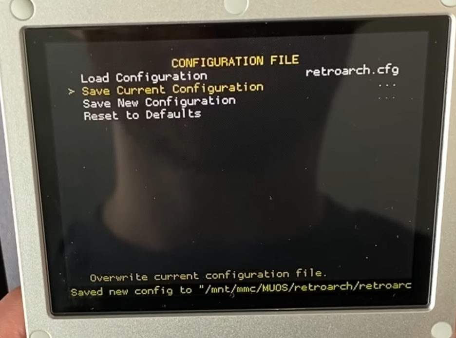 Finally, head to the RA main menu, then go to Configuration File and Save Current Configuration: